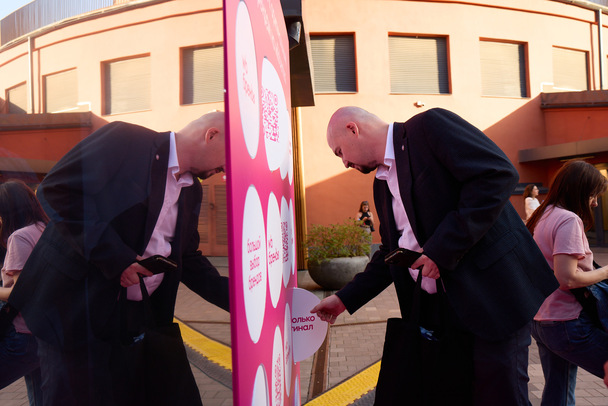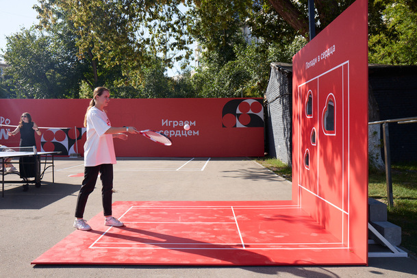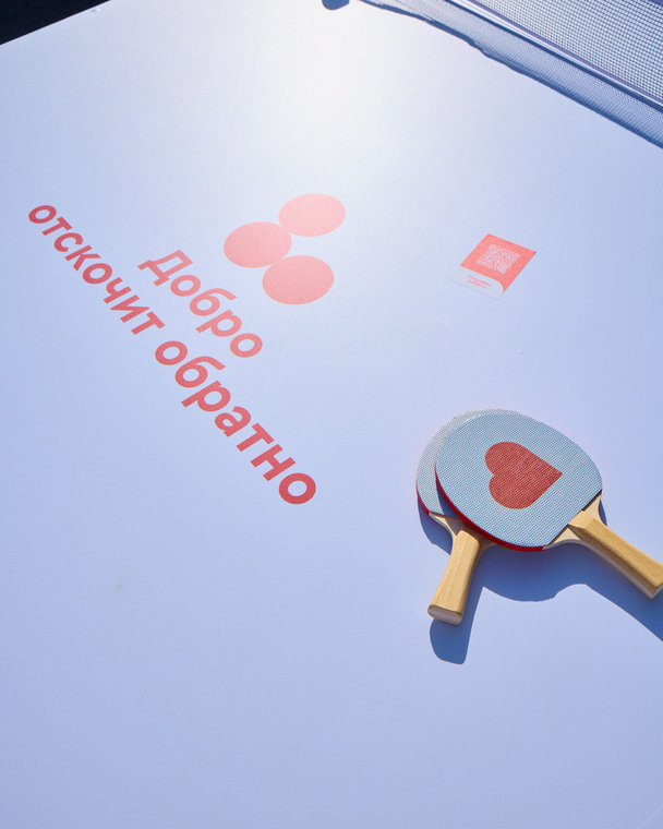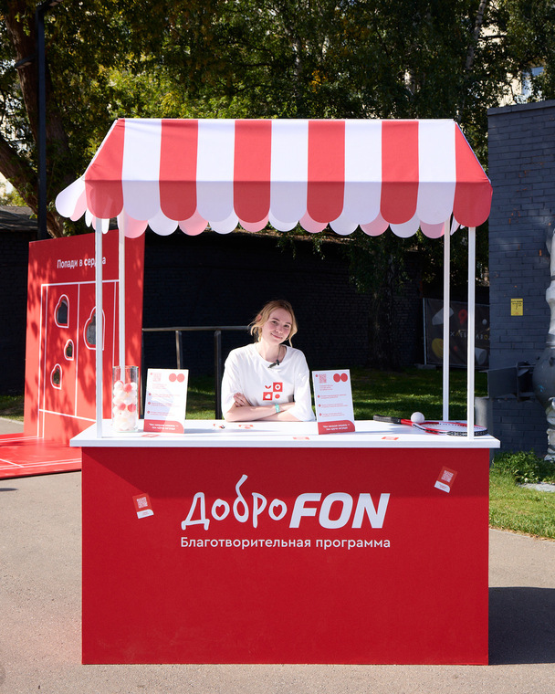 Рядом — ДоброFON развернул спортивный спот с ракетками и мячами: все, кто хотел, могли сыграть в бадминтон и настольный теннис, а еще — сделать доброе дело в виде пожертвования и получить приятные и полезные подарки.