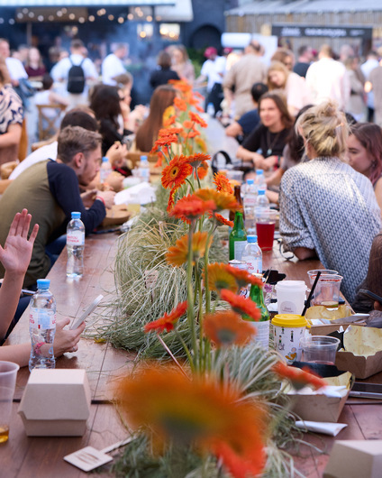 На фуд-корте работали мастера своего дела: Flaner привез ближневосточные хиты (бабагануш, сувлаки, бургеры и хот-доги с бараниной), «Лан Ма» собрал очередь за ламьеном, вонтонами и «битыми огурцами», Soul in the Bowl делал сочные боулы, «Ровесник» держал линию стритфуда, Zotman пек шесть видов пиццы (плюс фирменное комбо ЧТИВА), JNKL отрабатывал по смэшбургерам, рифленой картошке, батату и хоккайдо-сэндвичу, Touché подавал авторский стритфуд, «Мичелада» — кесадильи, тако и чили кон карне, «Оджахури» — хинкали и шашлык, Saviv — мезе, криспи-кукурузу и шашлычки из лосося, а Meltisss закрывал сладкую часть крэмбл-кукисами.
