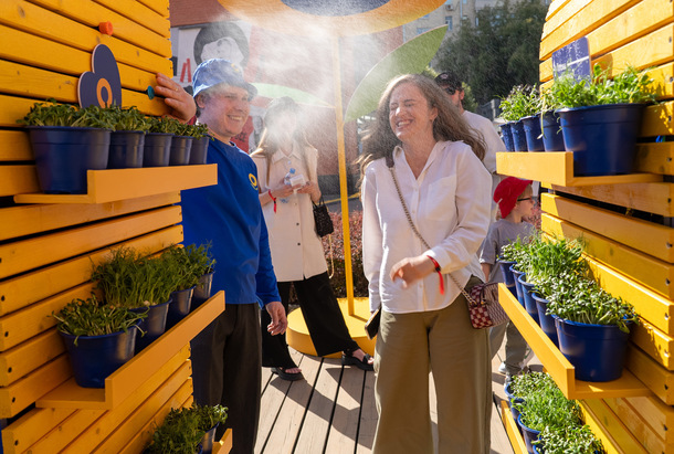 «Лента» построила интерактивный небольшой гипермаркет: там можно было побыть кассиром или курьером, вдохнуть ароматы горячей выпечки и фруктов, встать на «весы радости» и даже прокатиться на транспортерной ленте до кассы. А фотозона со свежей орошаемой зеленью, где можно было сделать фото в брызгах воды, стала спасением в жару.