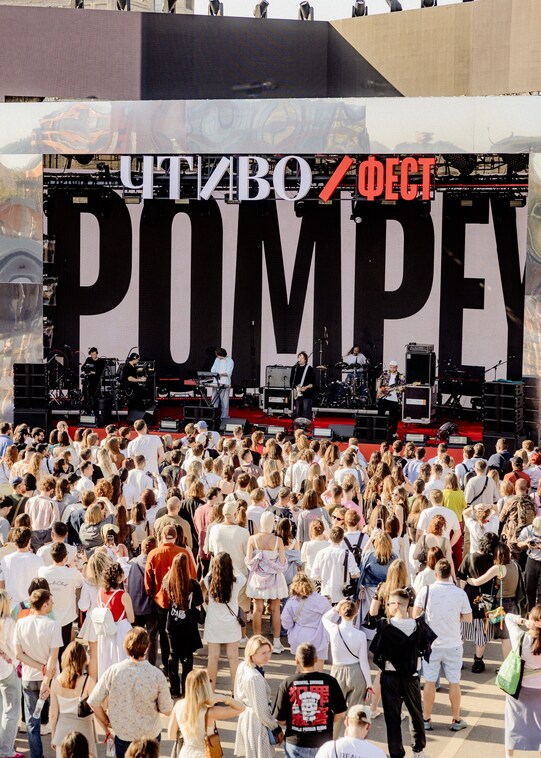 Концерты сцены «Музыка» стартовали с группы Pompeya. Их нью-вейв и мечтательные мелодии сработали как моментальный телепорт в конец нулевых.