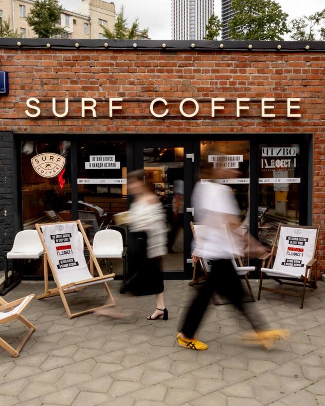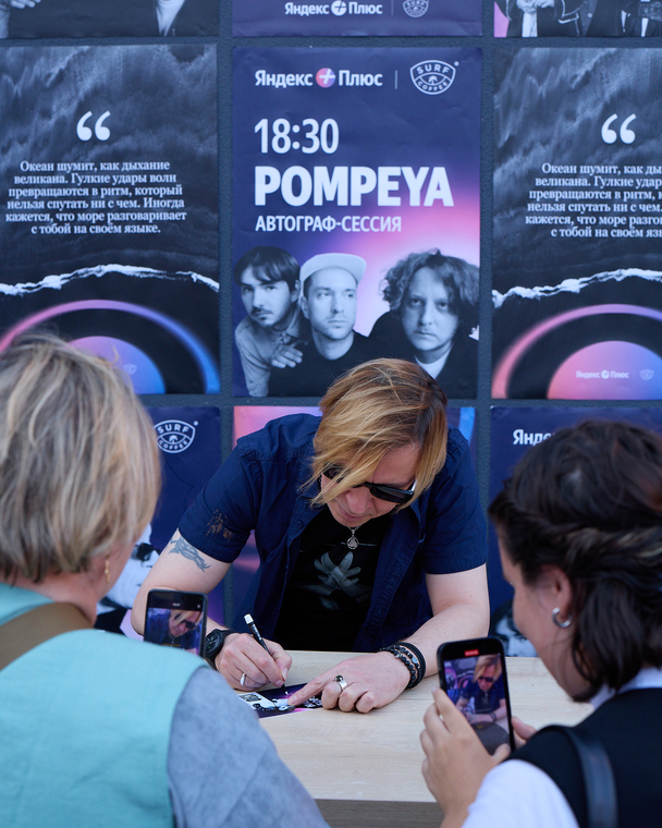 Во дворе у Surf Coffee® было особенно людно: Яндекс Плюс поставил шезлонги, поил лимонадом и чаем, организовал автограф-сессию — подписи раздавали Найк Борзов, «Город 312», Pompeya и Beautiful Boys.