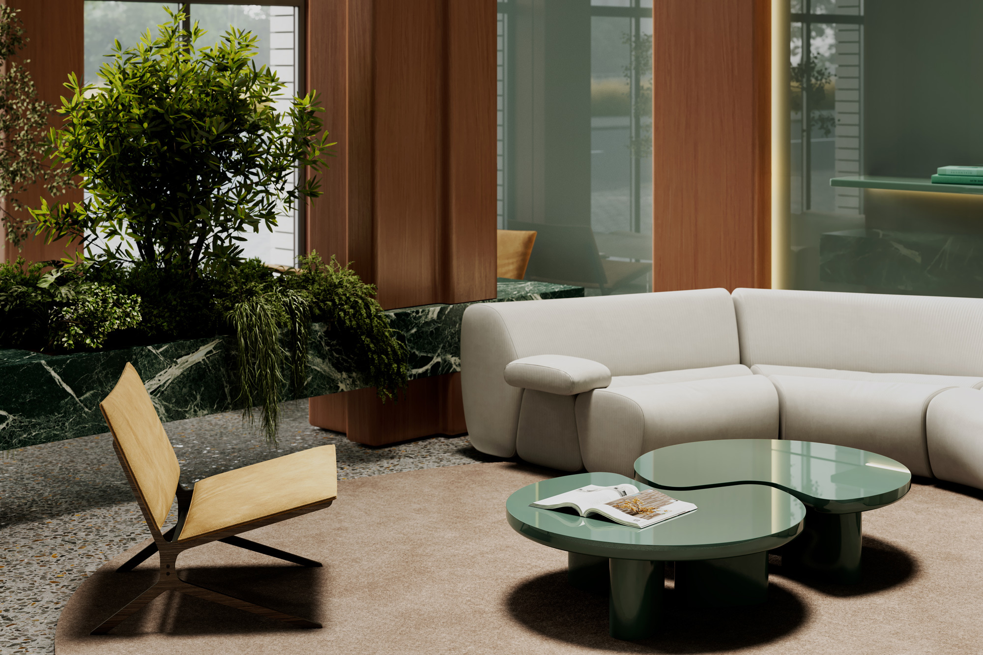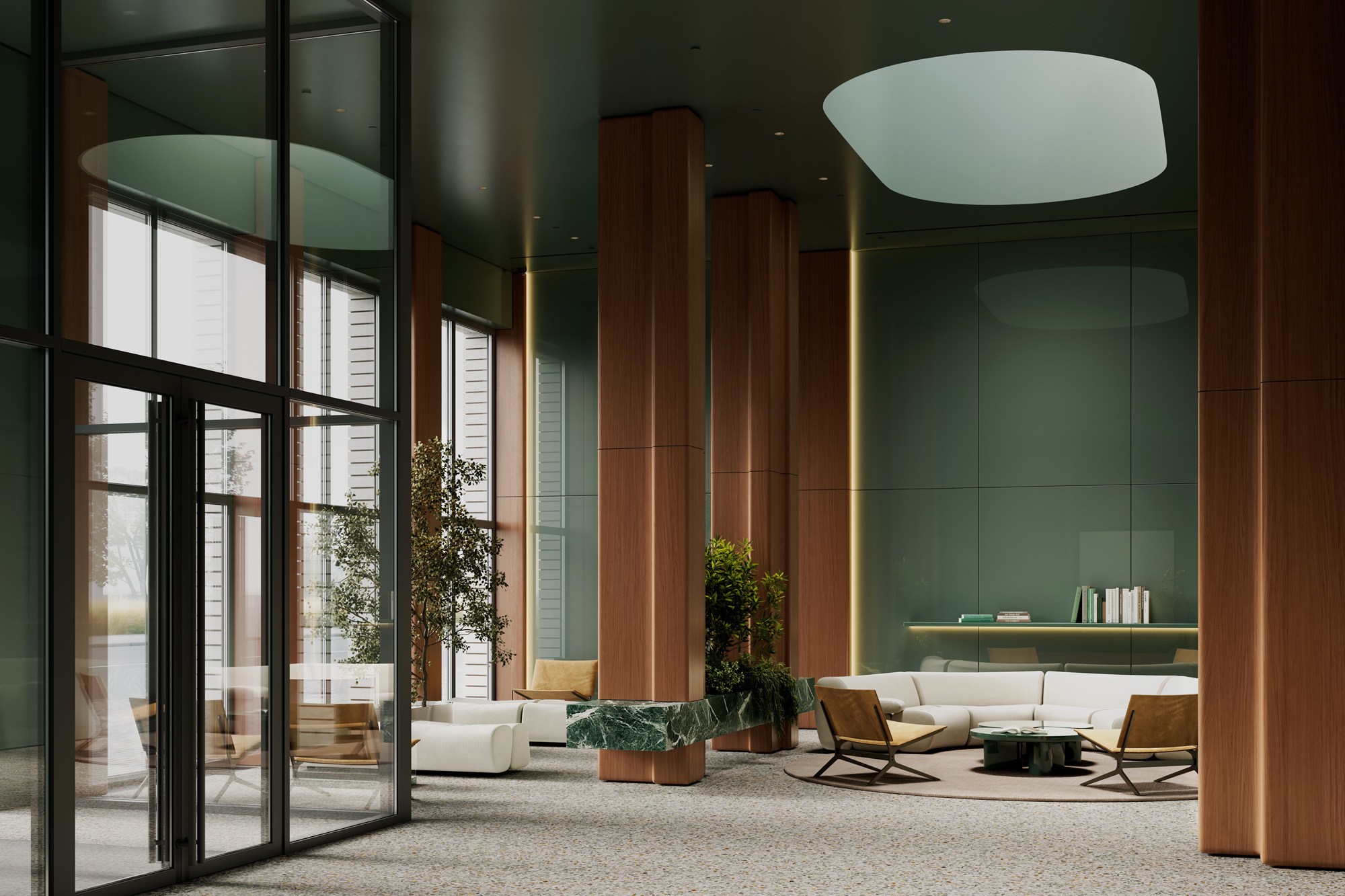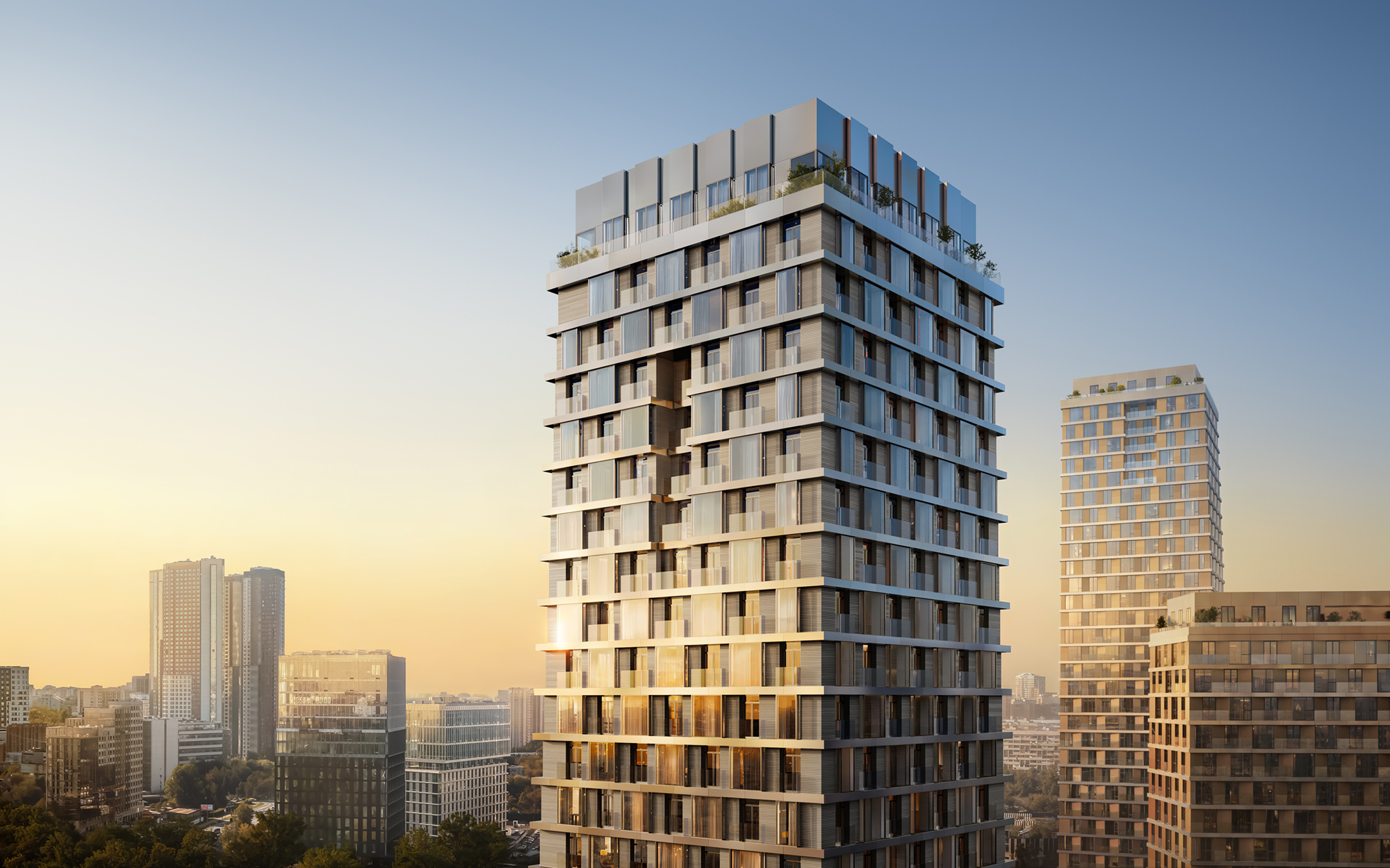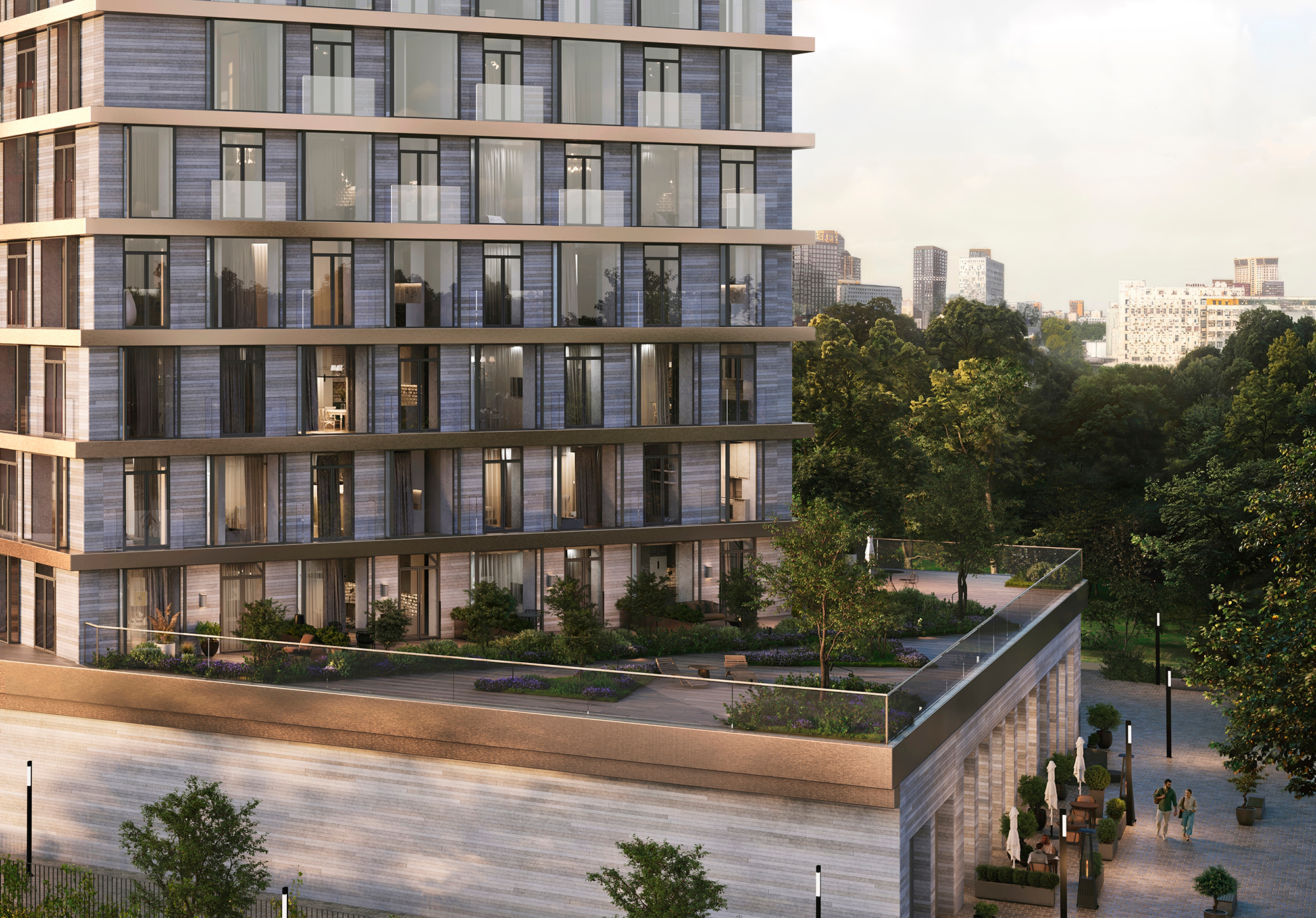 Архитектура квартала строится вокруг идеи камерной городской среды. Внутреннее пространство организовано как сеть прогулочных маршрутов, тихих дворов и зон для отдыха и общения. В каждом доме предусмотрены общественные гостиные для резидентов, детские игровые комнаты, фитнес-пространства и многое другое, что сделает повседневную жизнь удобнее и разнообразнее.