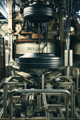 Из пластов сделанной в миксере сырой резины экструдеры выдают нечто вроде «теста», чтобы сформировать ленту протектора. А дальше начинается почти магия: в сборочном станке происходит намотка слоев корда — так называется формирующий основу «базис шины», к которому затем присоединяют кольца боковин и протекторную ленту. На этом этапе последняя не имеет рисунка. То есть выглядит «лысой».